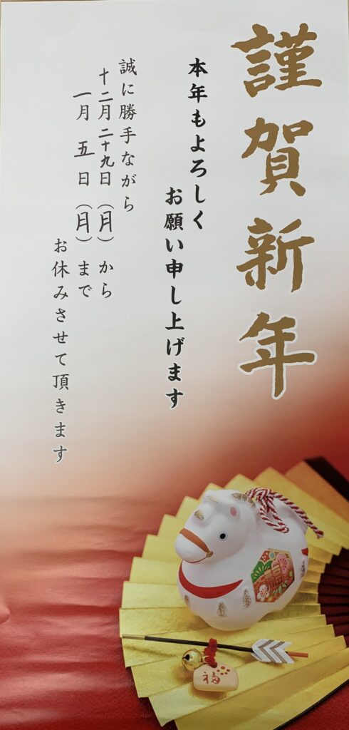誠に勝手ながら12月29日午後より1月5日まで休業させていただきます。